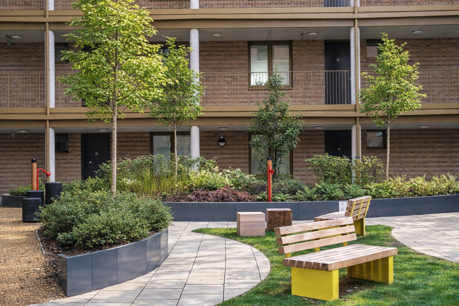 The scheme will deliver 890m² of new public realm, alongside 1,498m² of communal amenity space, and 738m² dedicated to children’s play. Landscaped podium gardens and upper terraces will introduce generous planting, while a dedicated ecological terrace will incorporate habitat features, such as bat and bird nesting boxes, to actively support urban biodiversity. Improved accessibility, permeability and cycle provision further reinforce a people-first, low-impact approach.